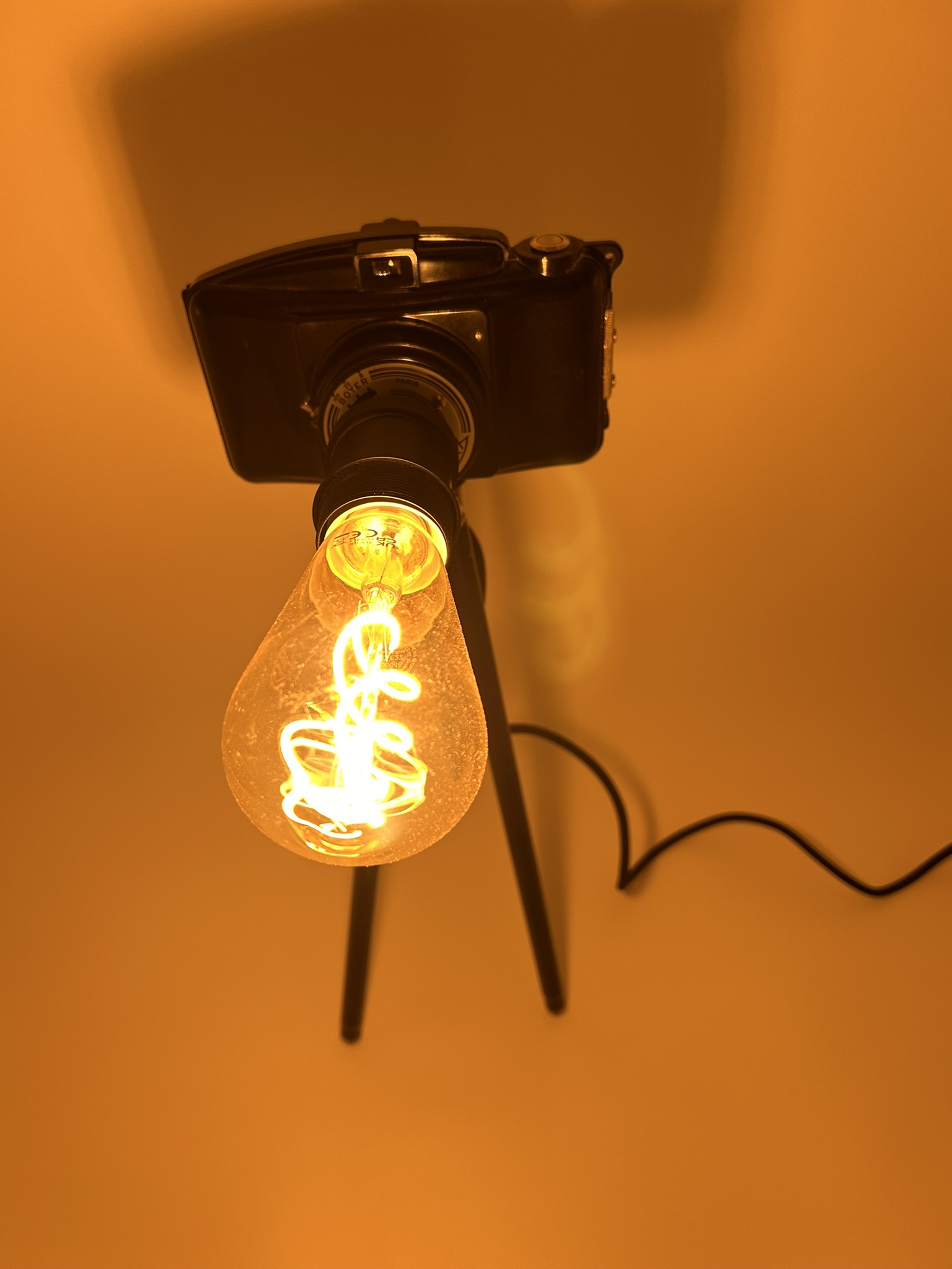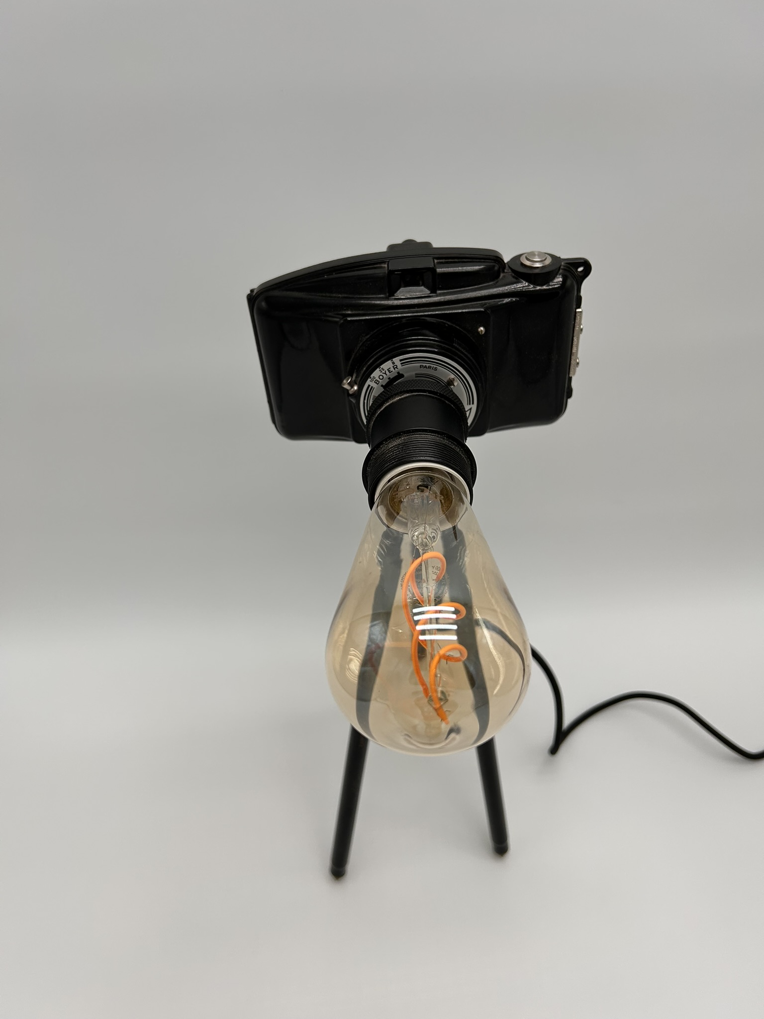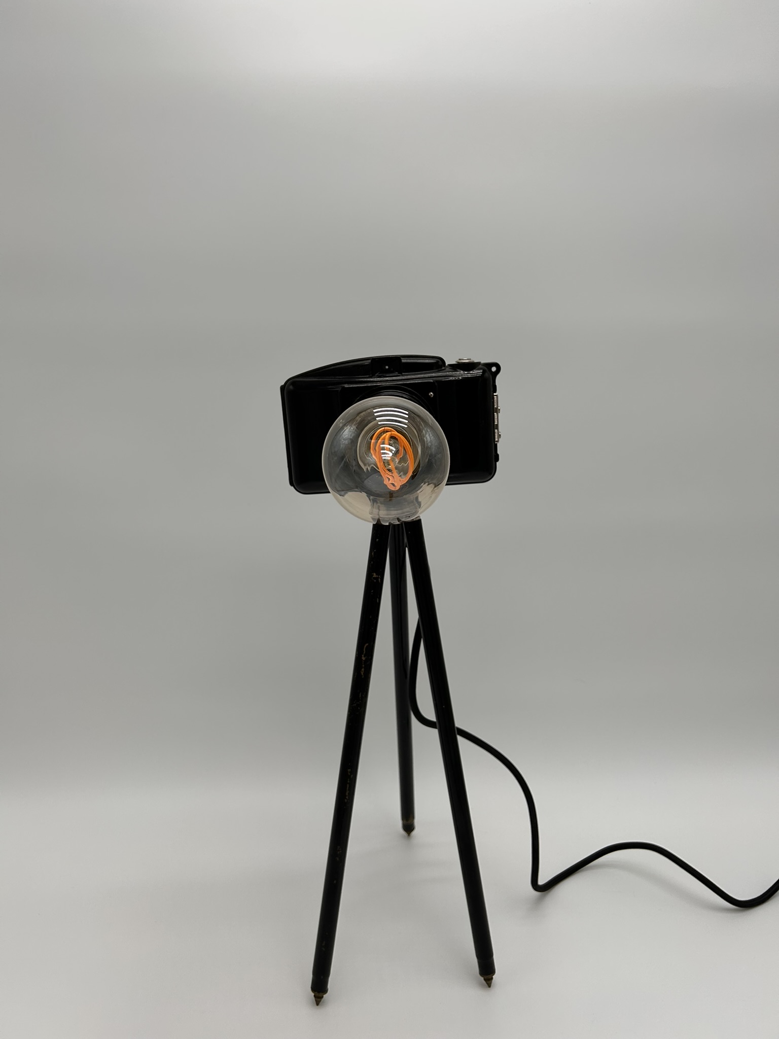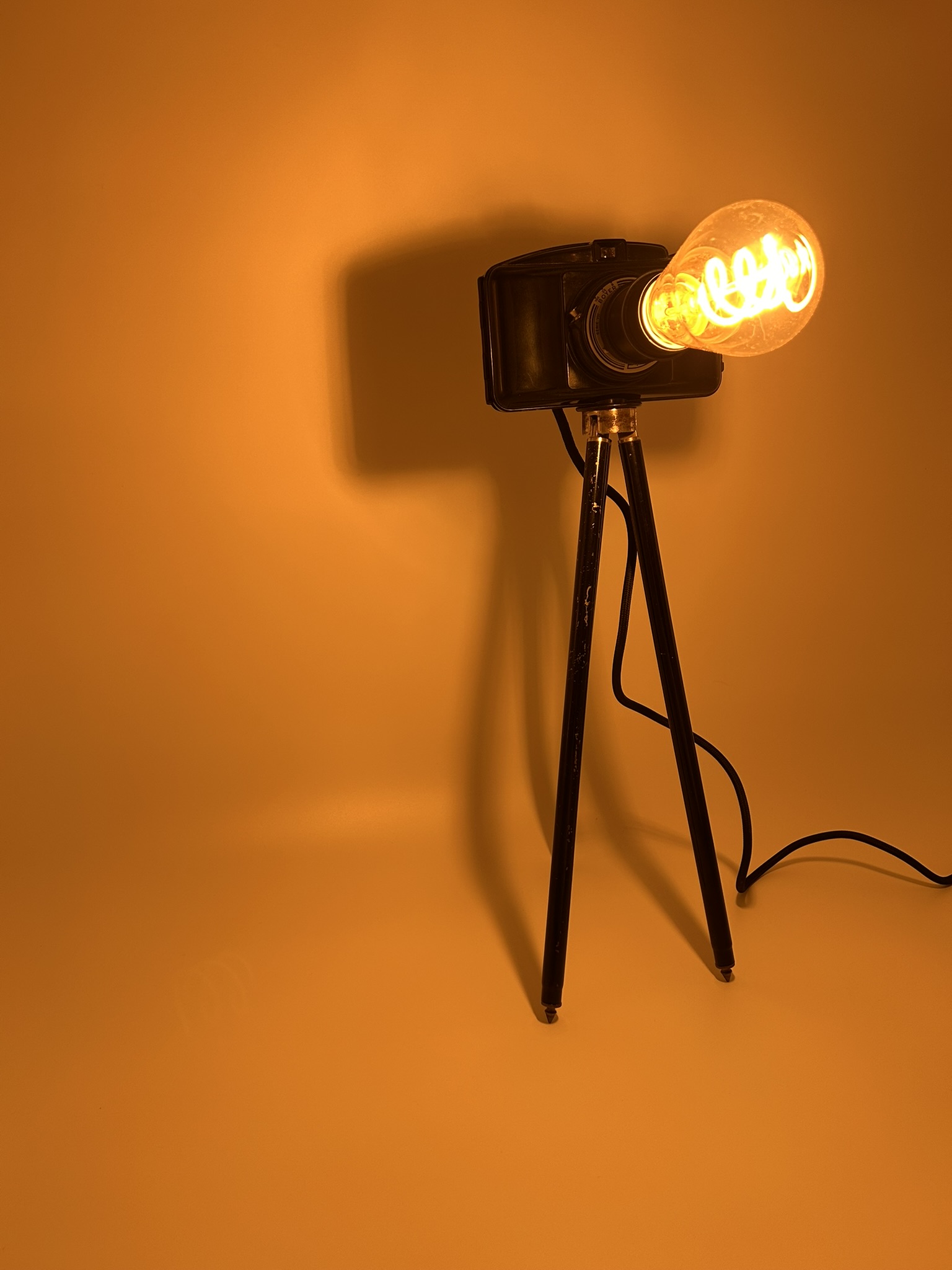 Apportez une touche originale et créative à votre décoration avec notre lampe appareil photo sur trépied, un luminaire unique qui combine design photographique et fonctionnalité lumineuse. Transformant un appareil photo classique en objet décoratif et lumineux, cette pièce allie art, style industriel et ludisme pour illuminer vos espaces avec personnalité.