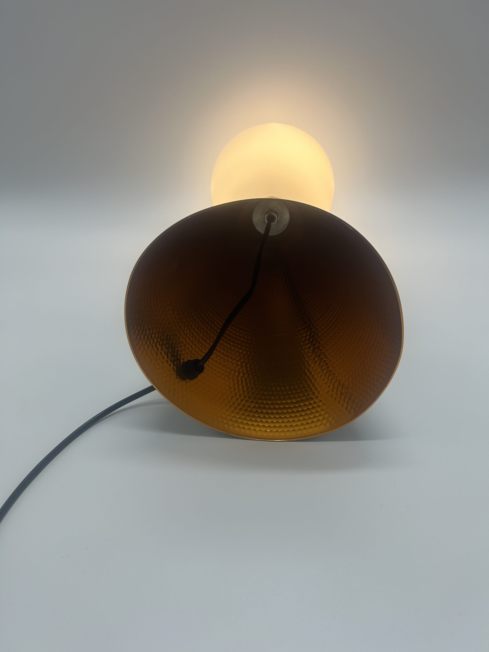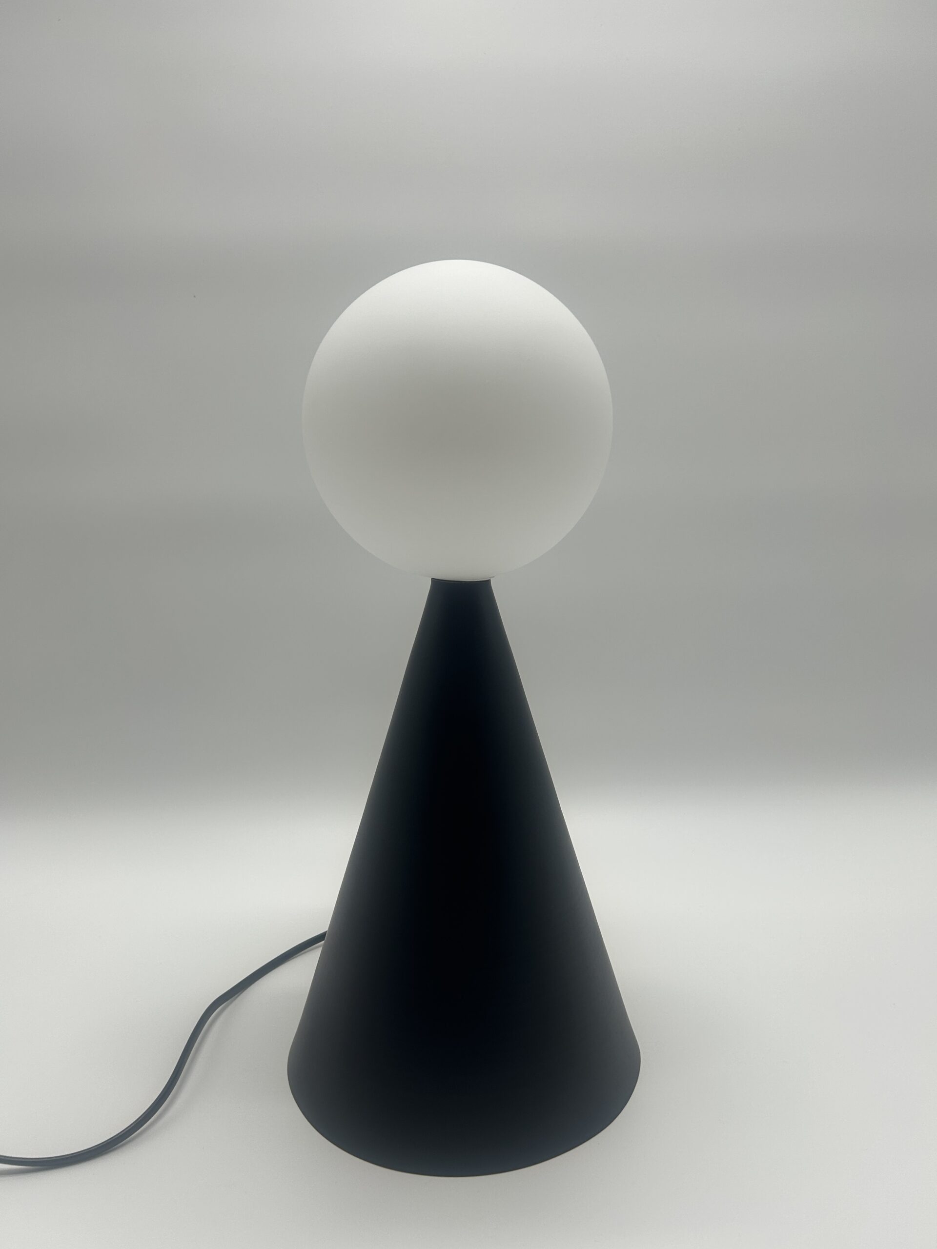 Affirmez le style de votre intérieur avec cette lampe cône design, un luminaire à l’esthétique moderne pensé pour apporter une touche à la fois élégante, graphique et contemporaine à votre décoration. Créée dans l’atelier, cette lampe se distingue par sa silhouette équilibrée et raffinée, qui associe la sobriété d’un cône métallique à la douceur visuelle d’une boule de verre opaque.