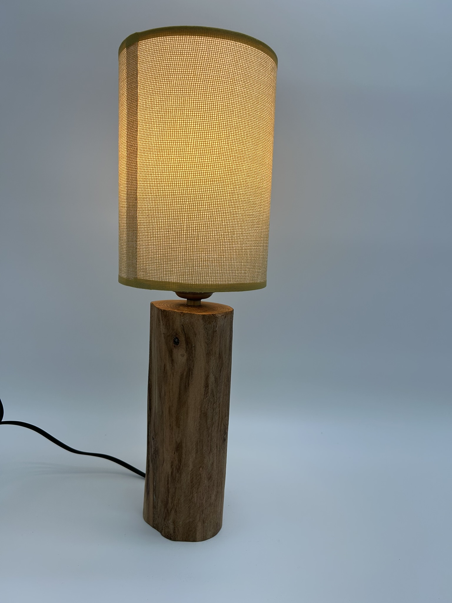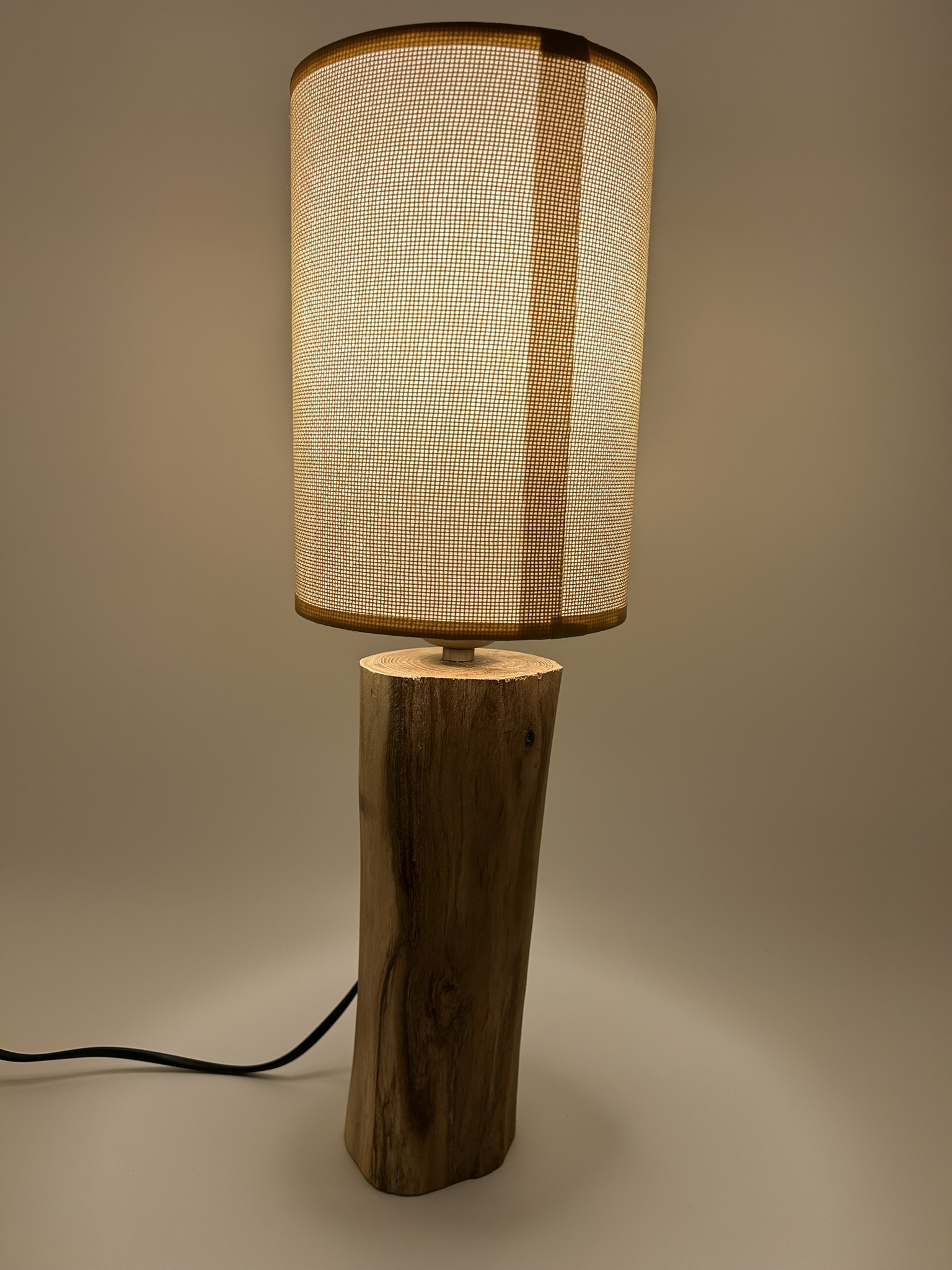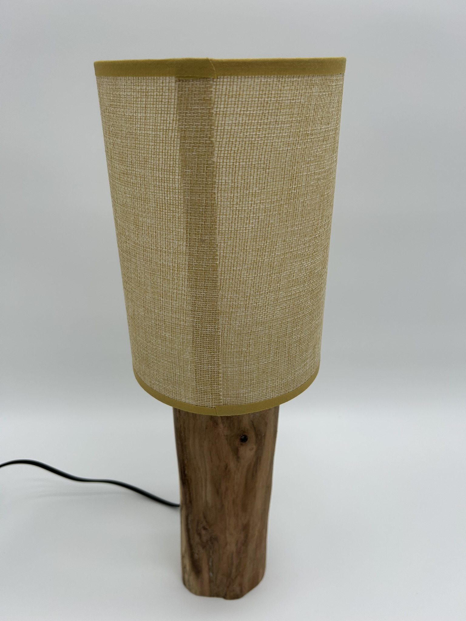 Lampe en grand rondin de bois avec abat-jour crème