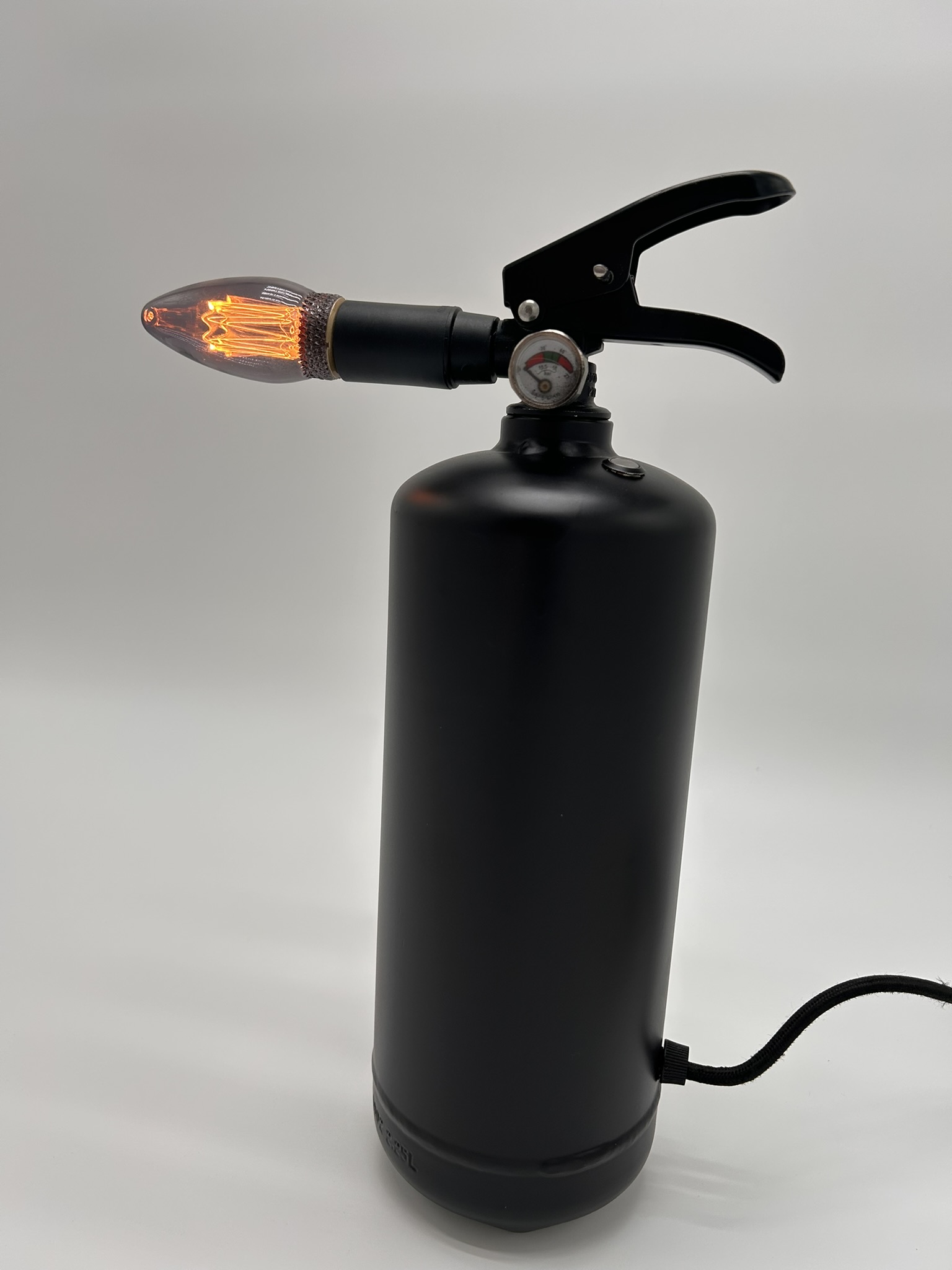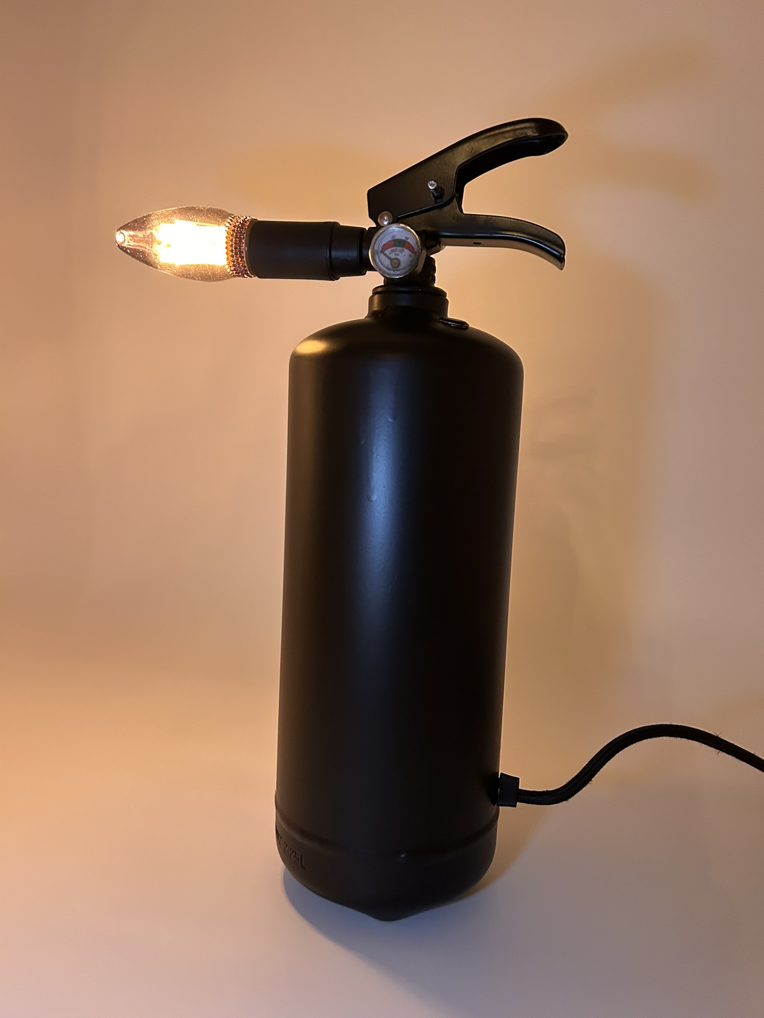 Lampe extincteur noir – Design industriel moderne & création artisanale