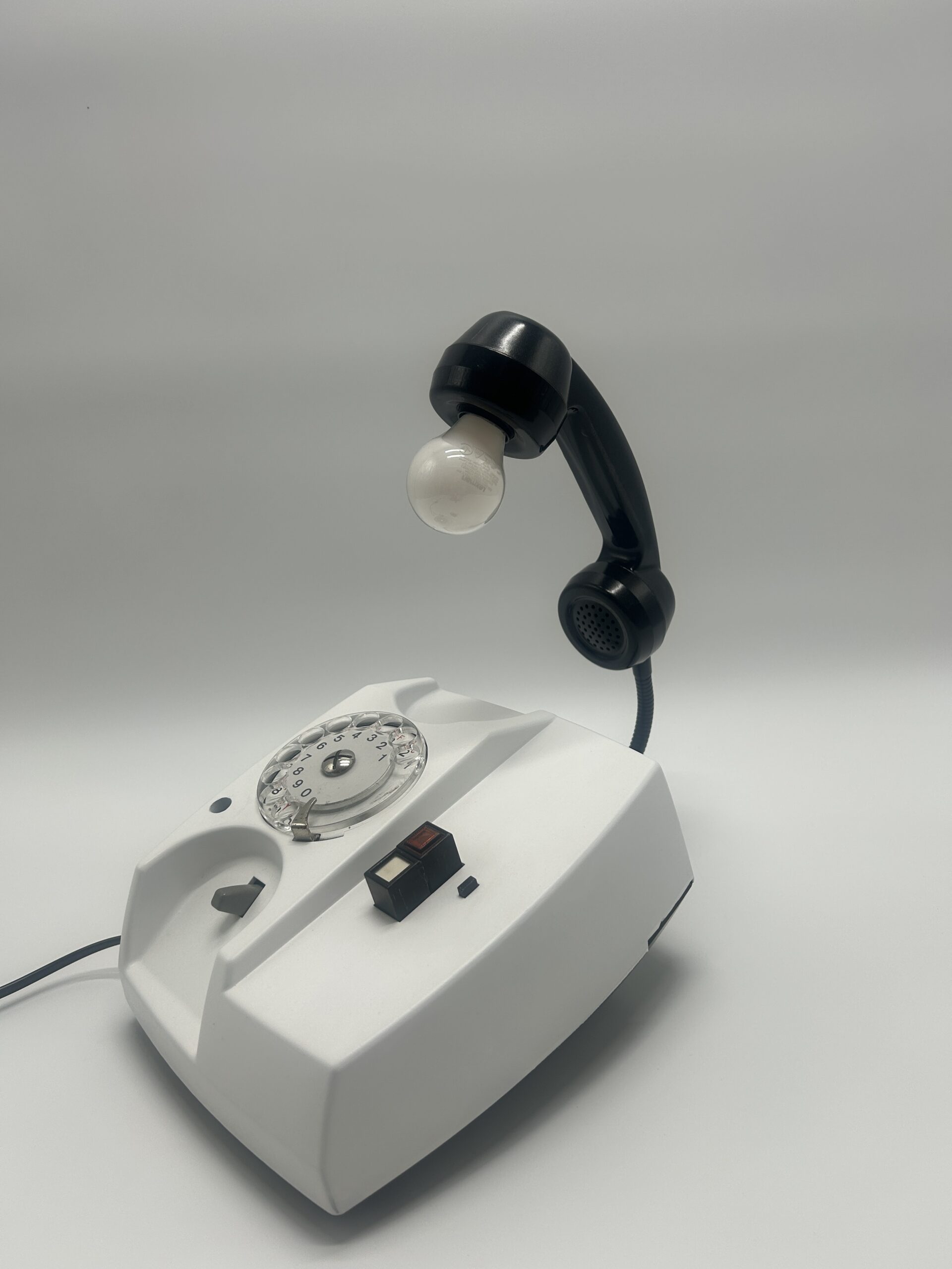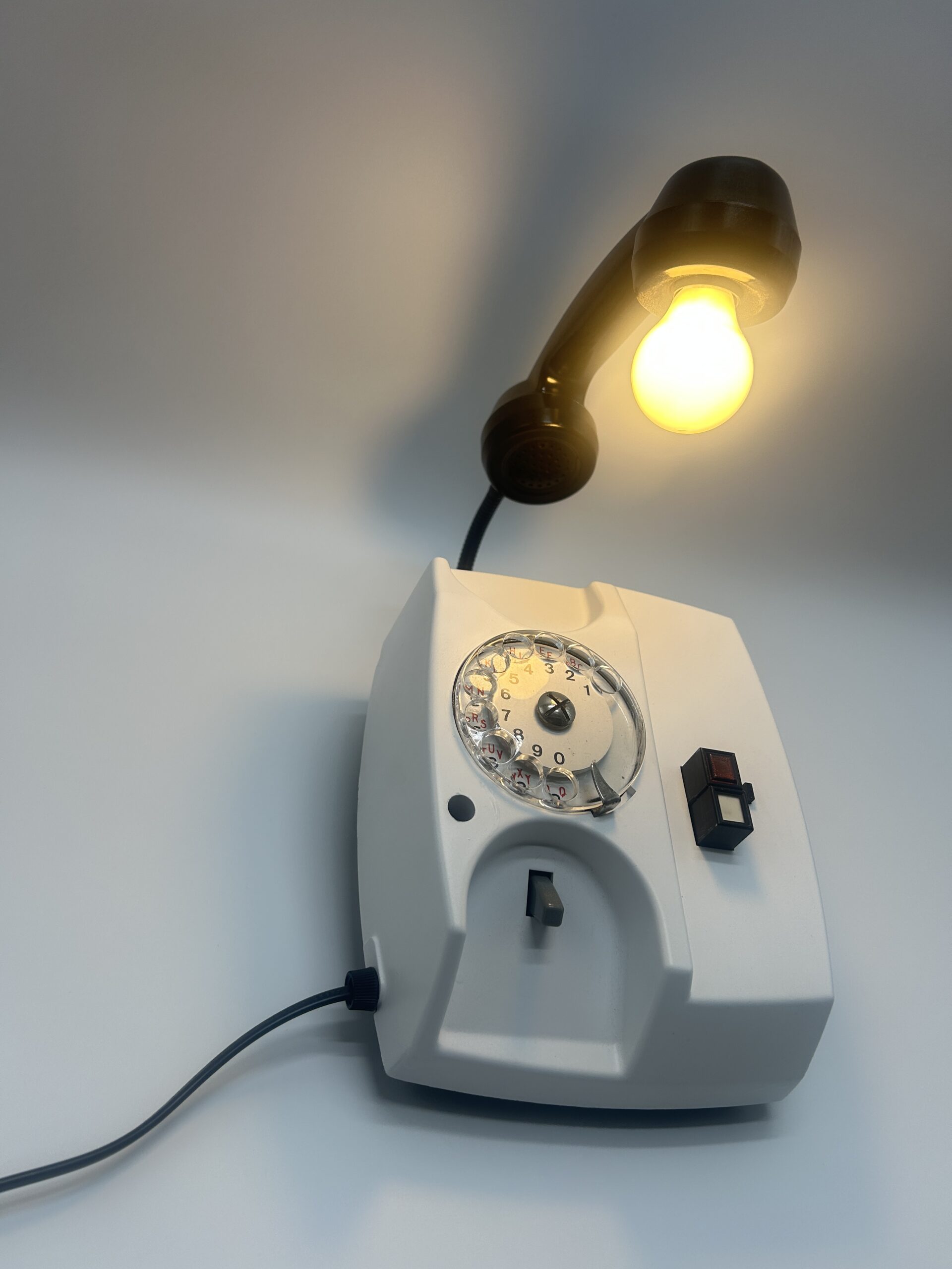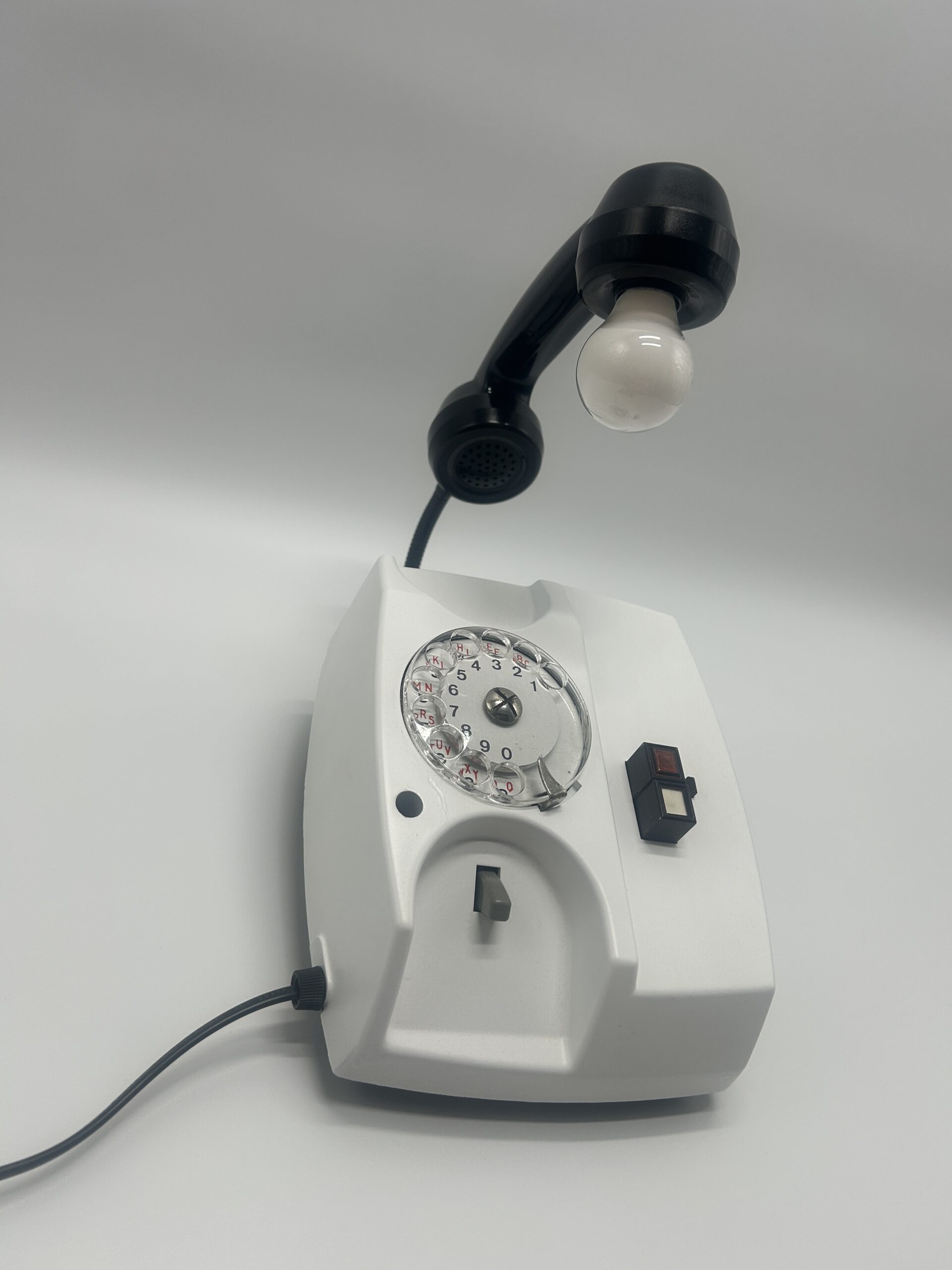 Apportez une touche rétro spectaculaire à votre intérieur avec cette lampe fabriquée à partir d’un vieux téléphone vintage à cadran tournant. Bien plus qu’un simple luminaire, cette création est un véritable objet de décoration, pensé pour séduire les amateurs de pièces originales, authentiques et pleines de personnalité. Son design insolite transforme un téléphone ancien en une lampe décorative unique, capable de capter immédiatement l’attention et de devenir l’élément fort de votre décoration intérieure.